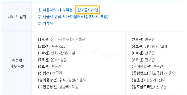 ✅ 기후동행카드 김포골드라인 추가